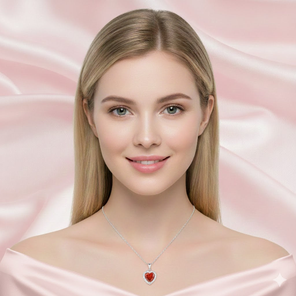 Moonstone Cat Heart Pendant Necklace in Sterling Silver